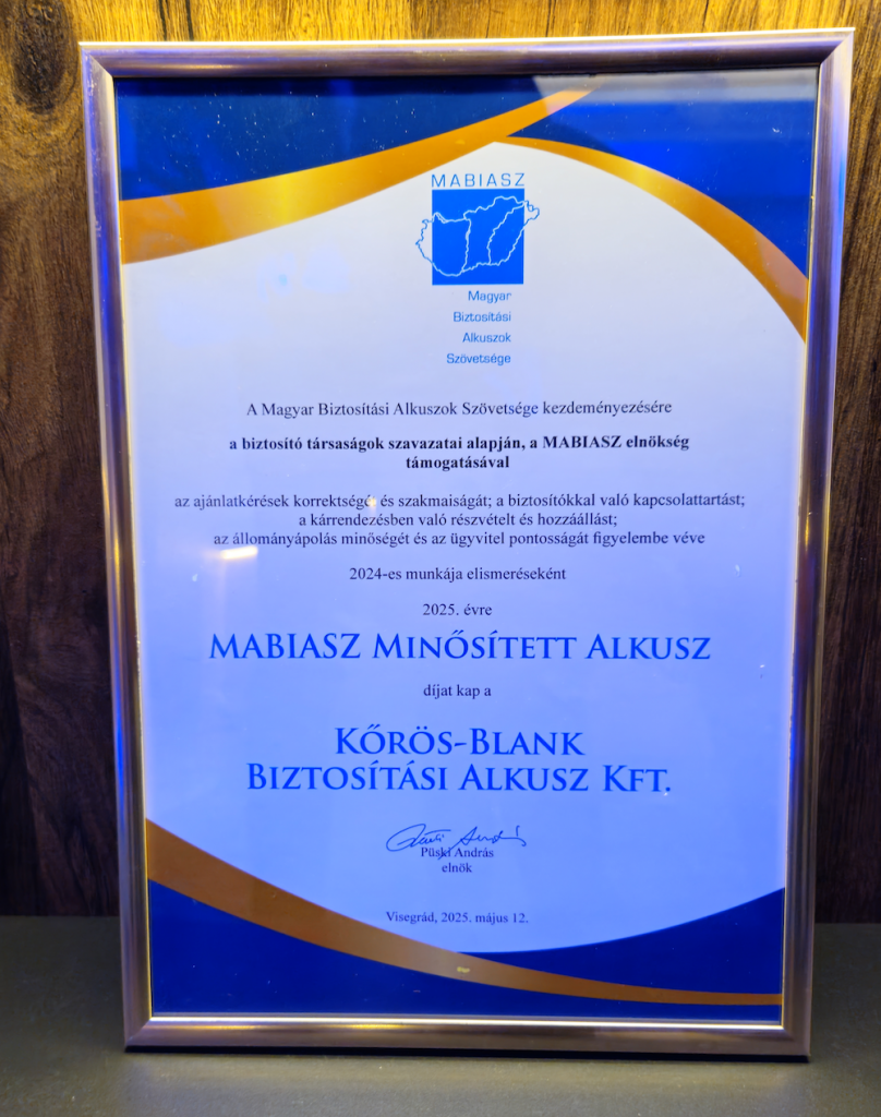 Óriási öröm és megtiszteltetés számunkra, hogy 2025-ben – immár harmadik alkalommal – elnyertük a Magyar Biztosítási Alkuszok Szövetsége (MABIASZ) által odaítélt Minősített Alkusz díjat!